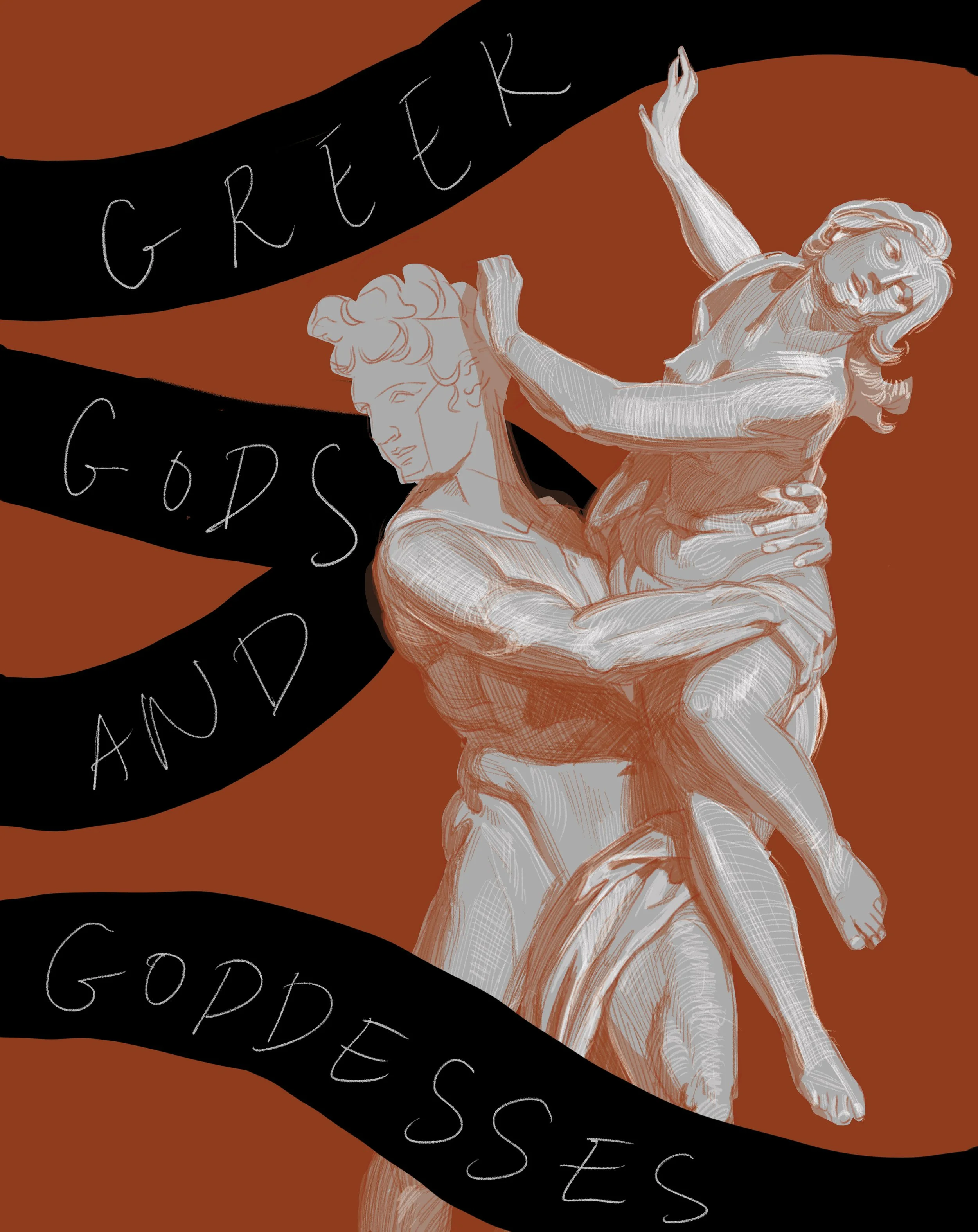 I began my work by revisiting one of my favourite Greek myths about Hades and Persephone. This sent me down a research rabbit hole of Ancient Greek imagery and symbolism. Soon enough I stumbled across a wonderful sculpture – The Abduction of by an Italian sculptor, Gian Lorenzo Bernini.
