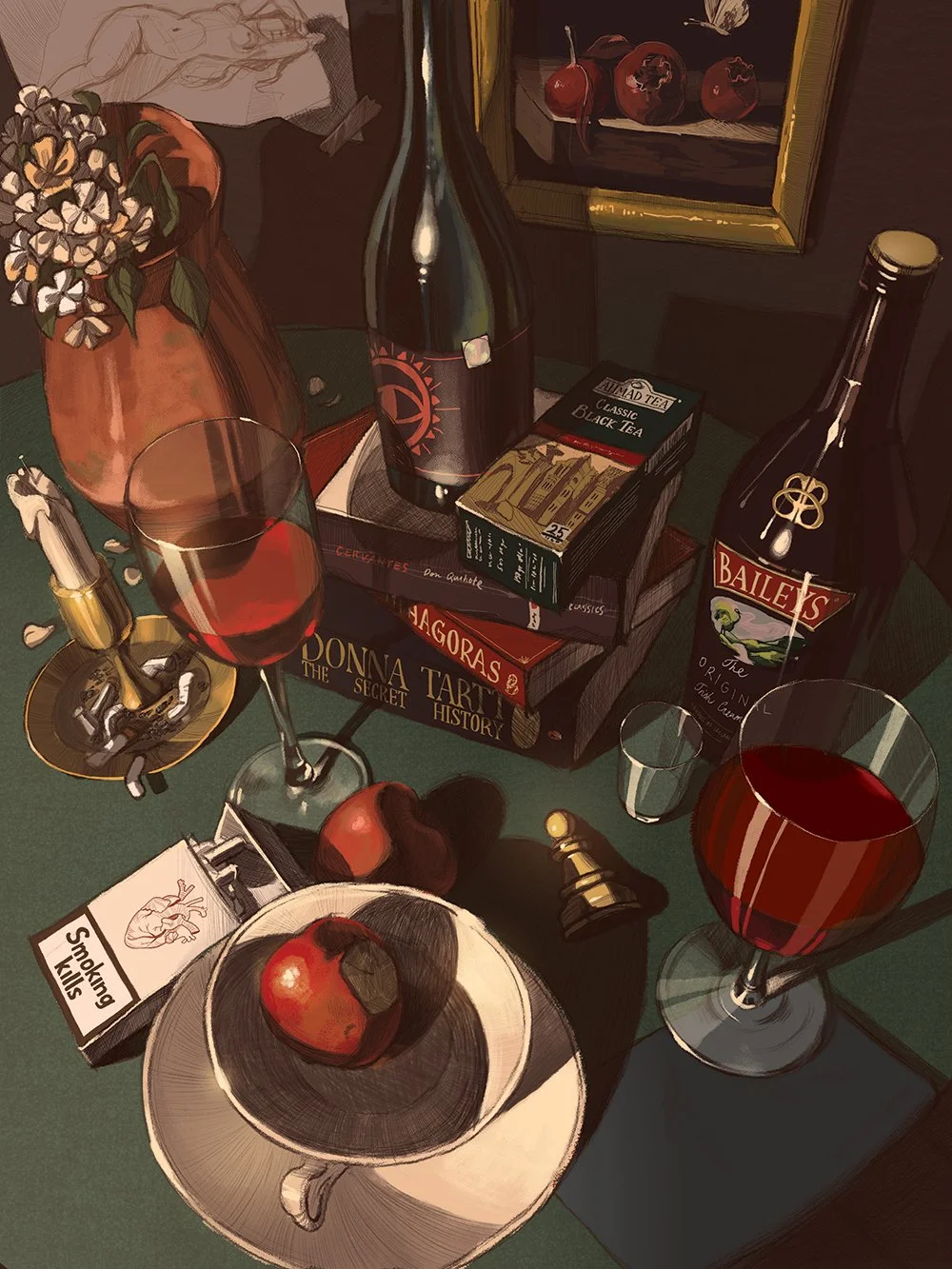 There are 9 of these patterns in the book – one for each story. I wanted to capture one important element of the illustration that would also tie in with the storyline itself. For example, the short story “The Game” has a pawn in its dividing pattern – alluding to the name of the story – the pawn in the centre of the illustration, as well as my heroine referring to her relationship with her partner as a “chess game, where we are trying to predict the moves the other would make”. So this pawn element seemed to sum up the essence of this story pretty well.