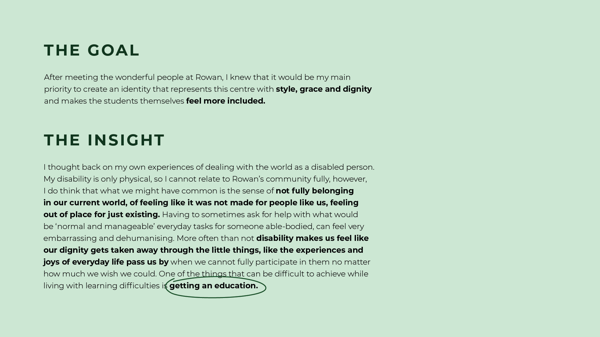 Here you can see the logo that Rowan has had for ages. Their representatives made it clear in the brief that they are looking for a more contemporary design that would exude a more mature feeling while still staying true to their roots. I built my concept on the idea that everyone deserves to be listened to and taken seriously no matter their disability. I was inspired by classic logos of universities and educational institutions.